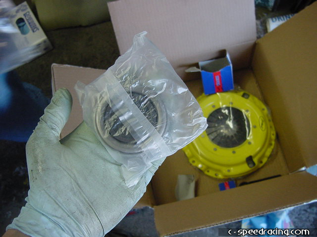 For this installation, we've decided to go ahead with an ACT Xtreme clutch with an organic full face disc. The kit is 100% complete and comes with a new throw out bearing and thrust bearing. It also comes with a clutch alignment tool making installation a breeze. |