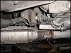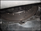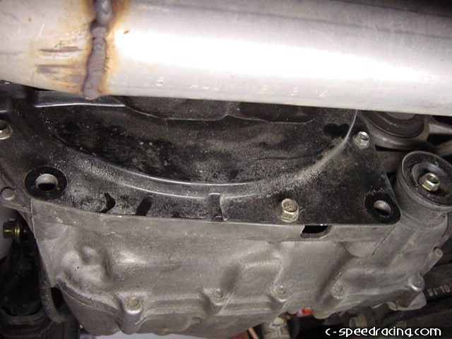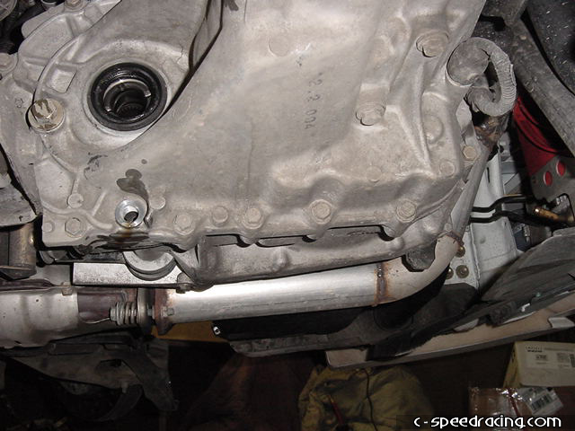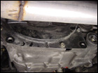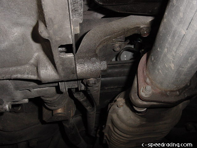 While under the car, take this time to remove the transmission bracket on the front and rear of the tranny. |