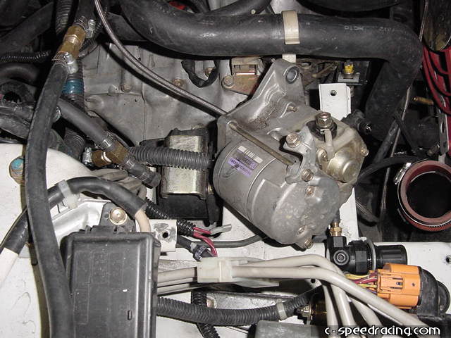 Remove the starter by taking out the two 12mm bolts, one is longer than the other. Make sure you disconnect the ground before pulling it out. |
