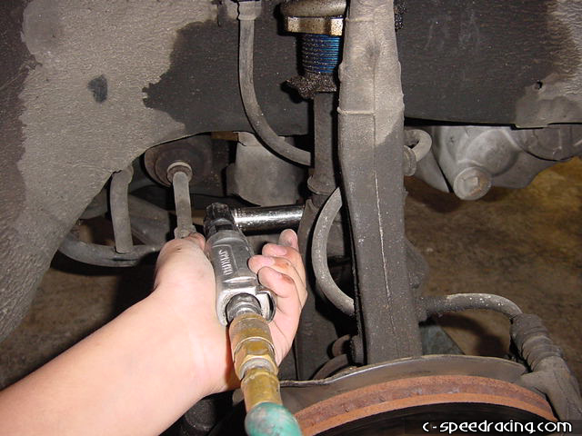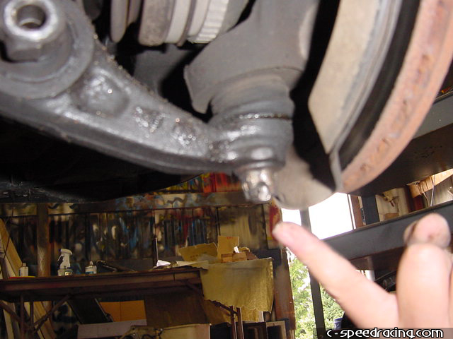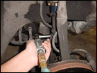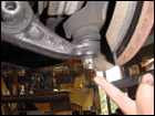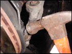 Step 4: Sometimes it can be difficult to remove the ball joint, so grab a mallot and hit it on the lower control arm where the ball seats. Don't hit the stud, you will mushroom it. |