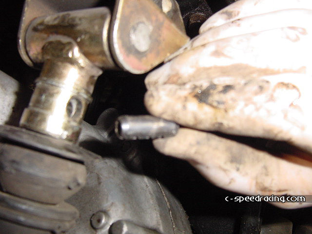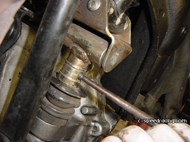 Step 8: To remove the shifter linkage, pull off the snap ring that covers the lock pin with a pair of pliers or a screwdriver, then with the correctly sized punch, hammer out the lock pin from underneath. Don't lose it! |