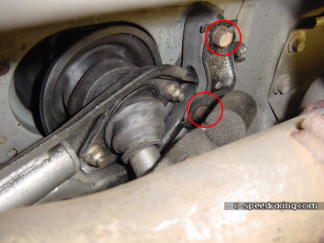 Step 9: Remove the shift linkage from the chasis. There are 2 12mm bolts. It may be hard to maneuver around the exhaust. A universal joint may come in handy. |