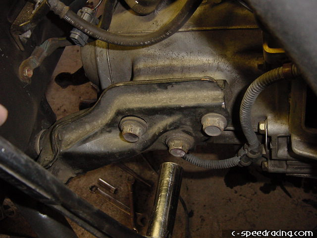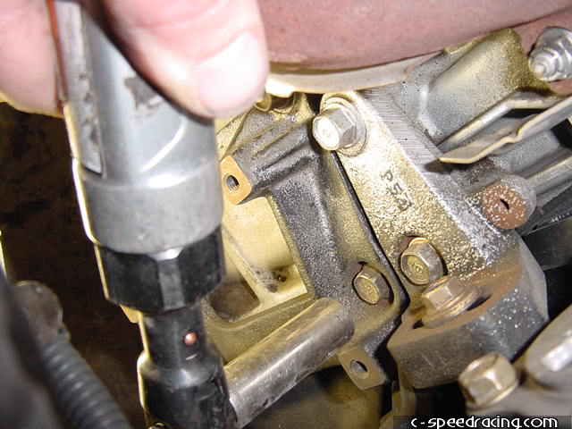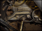 Step 21: Line up the lower engine mount brackets with their respective locations under the car and bolt up the brackets securely. Once this is done, securely fasten down the upper mounts and you can safetly remove the engine hoist at this point. |