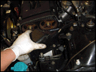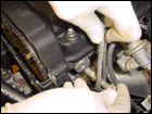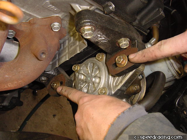 Step 23: Loosen the steer pump adjustment bolts so you can tension the belt, then tighten down securely. Make sure the bolts are tight. |