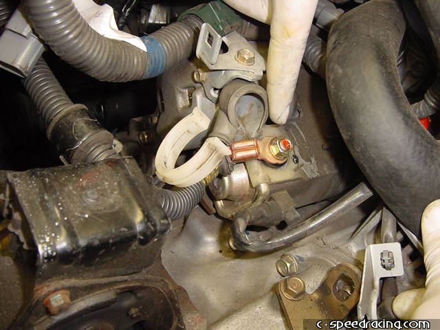 Step 23: Reattach the ground wires to the starter and block. |