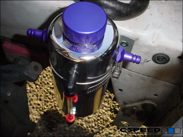 The OEM oil seperator box on a B18C1/5 and B16A may not be sufficient under some conditions. Also, some build ups like the LS/VTEC or B20/VTEC may not have an oil seperation setup at all without having to use a custom one. It is important to filter out the oil vapors from the crankcase from the PCV system because the added oil actually lowers your octane rating of the fuel therefore increasing the likelyhood of detonation.