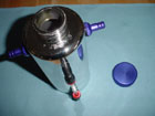 The unit we are using here is the oil seperator can from SRR. You can see here the build quality is very nice. 100% stainless with billet fittings and lid. One great feature it has is the side tube which allows you to see how filled the can is - whereas most other kits do not have this feature. |