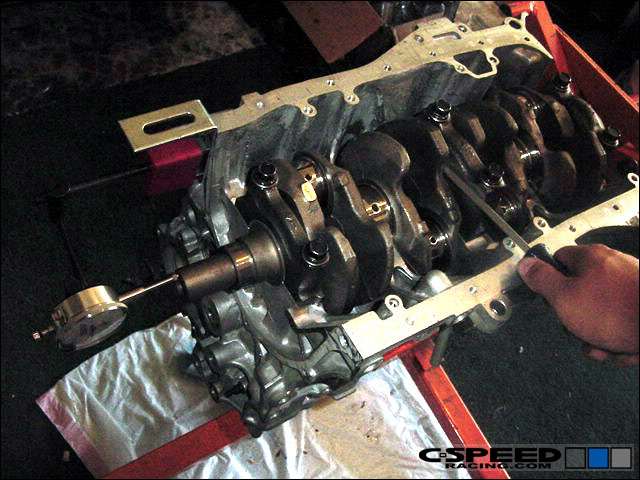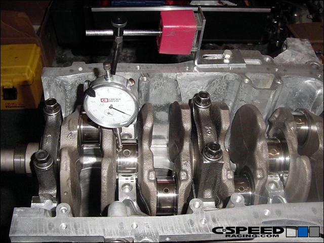 When assembly a new bottom end with new bearings its a good idea to measure the endplay on the crank to ensure that it is within spec. Otherwise new thrust washers will be required. At the same time, measure the crank journals to ensure that they are also true and round.