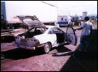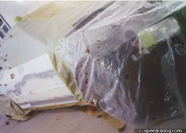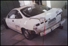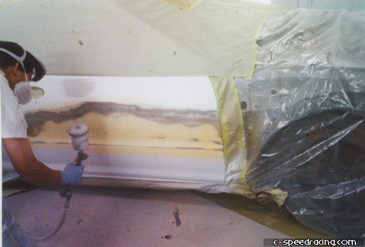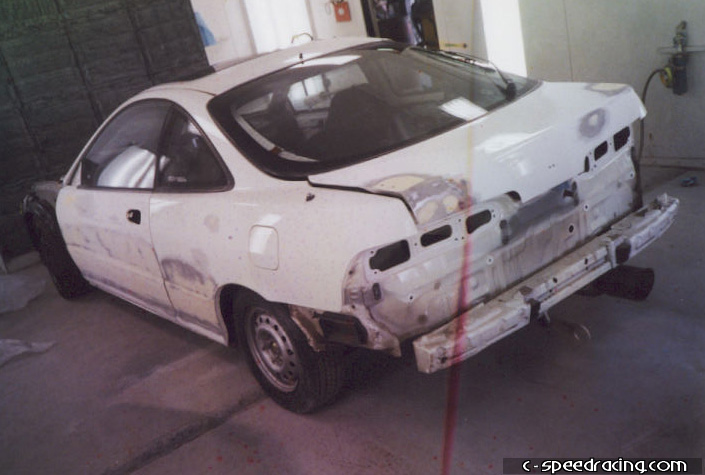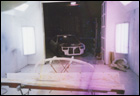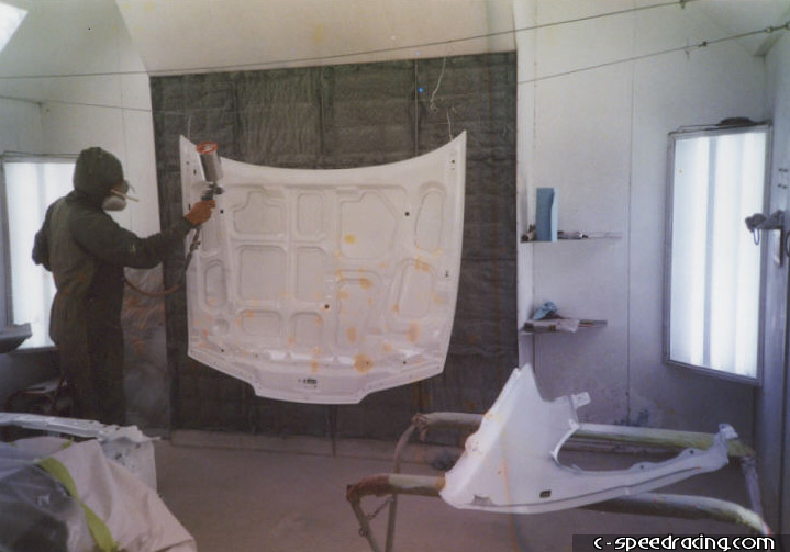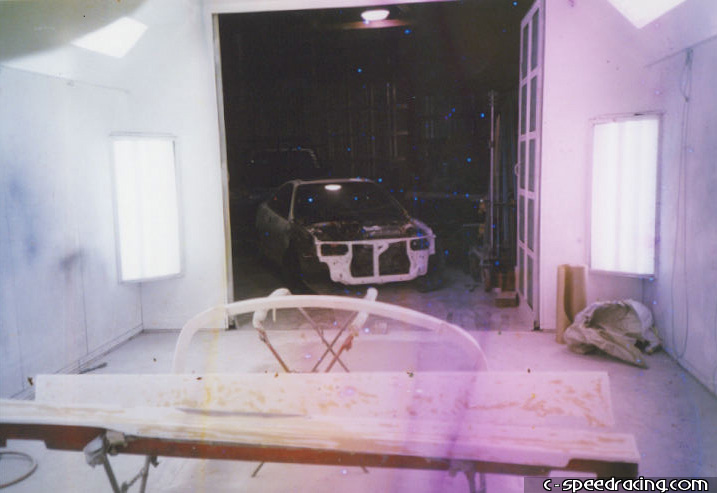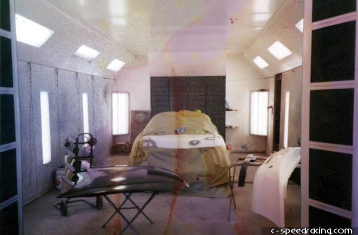 Now that the body work was complete, time to move the car to the paint booth and prepare for masking. |