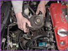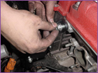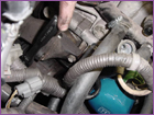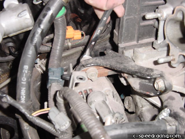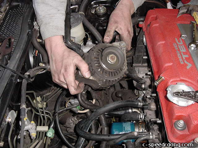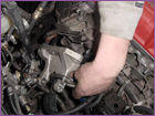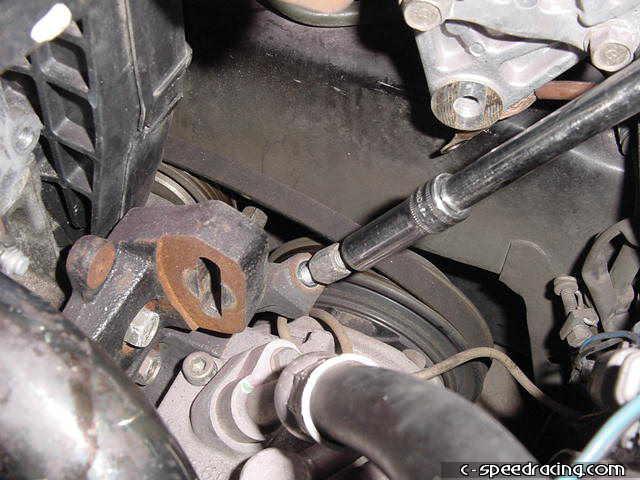 To give the A/C tensioner some slack, back out the jam nut. Once the A/C belt is off of the pulleys. Remove the alternator. |