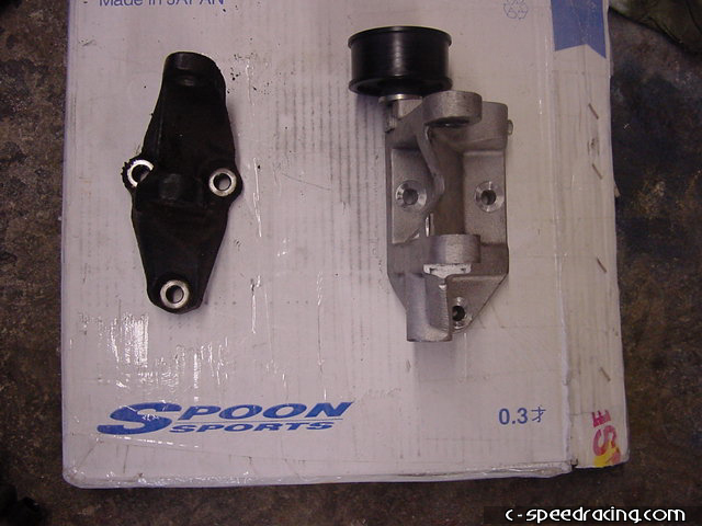 Now remove the old alternator bracket from the back of the block. You can them side by side with the new JRSC alternator bracket. |
