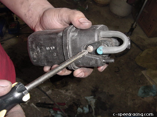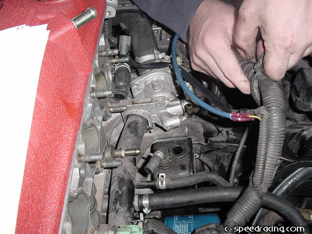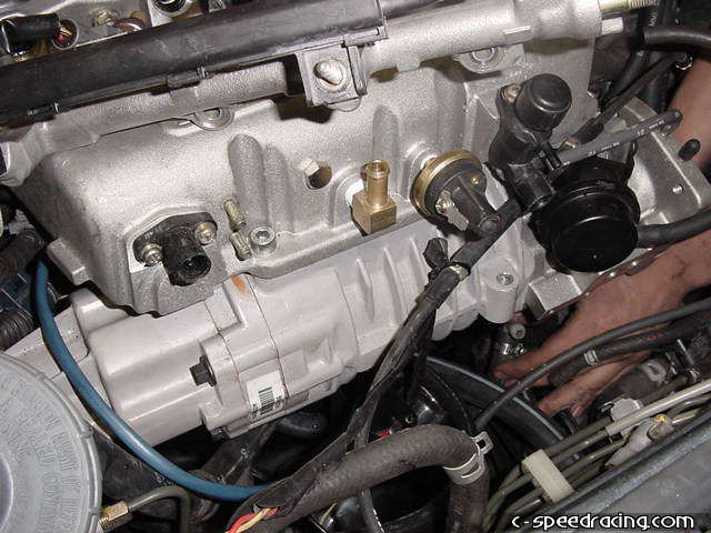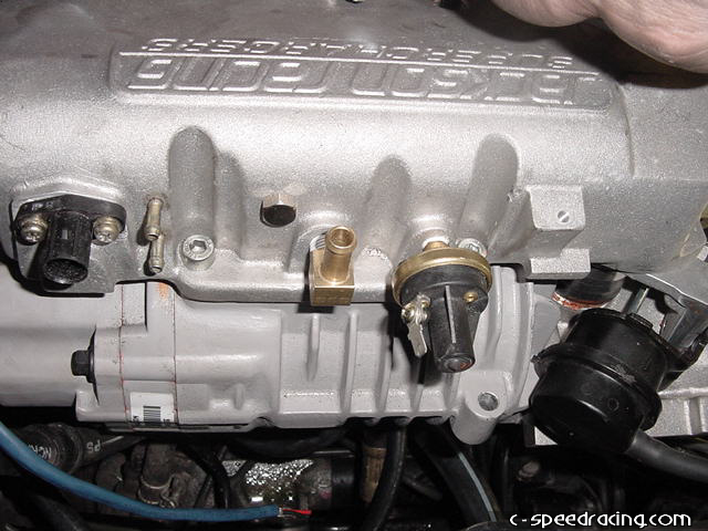 Reconnect the water temperature sensor. Then remove the vacuum canister from the underside of the stock intake manifold. You will need to remove the solenoid. |