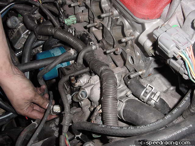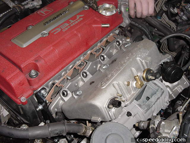 Depending on the year of your car, you may need to use a Tee fitting on the vacuum source from the manifold to run the PCV valve. Remove the purve control solenoid from the stock manifold and bolt it to the JRSC manifold. Double check that nothing is binding or pinched. |