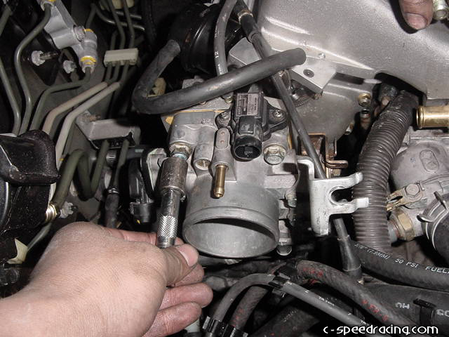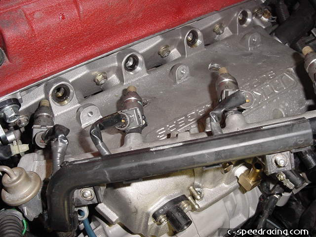 Bolt the throttle body to the new manifold and bolt the IACV to the back side, be sure you didn't lose the o-ring on the IACV. You can now reinstall the fuel pressure regulator to the fuel rail by using the supplied JRSC adapter flange. |