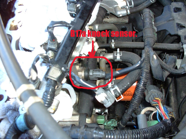 Here you can see the knock sensor in its new location. |