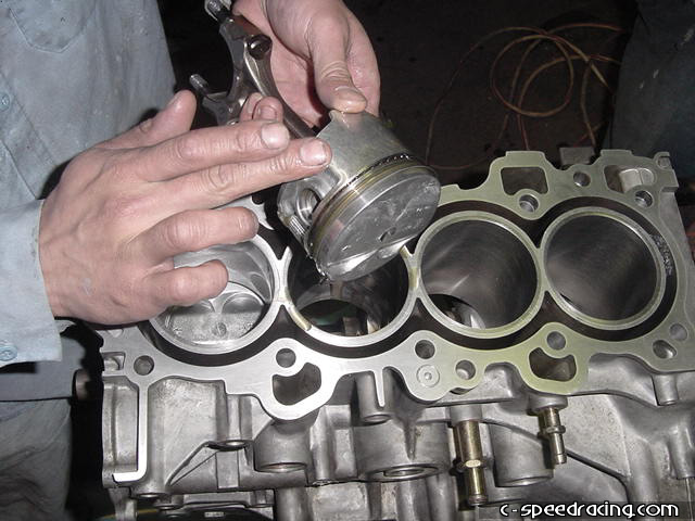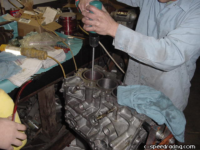 While the valvetrain was being taken care of, the bottom end also needed some attention. The cylinders where fine prior to disassembly so a little honing took care of cleaning them up for the new PR3 Honda Del Sol pistons. This will yield an astonishing 11.3:1cr with the stock GSR head. |