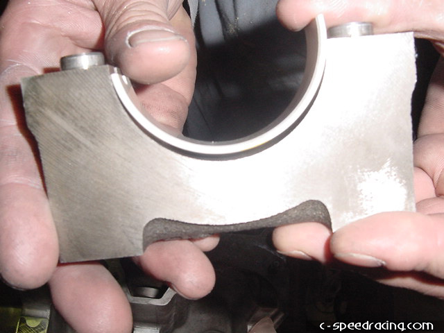 Make sure to properly place the bearings into the main caps. They are slotted and can only be placed in one direction. Press firmly until they are completely seated. |