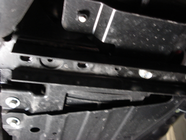 Reinstall the 12mm bolts to secure the subframe brace to the underbody. Finally, rebolt the underbody bracket to the brace. |