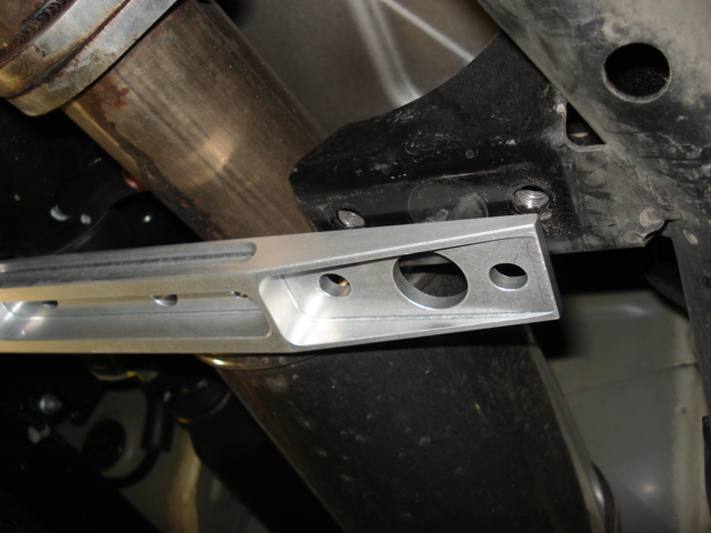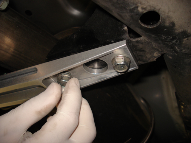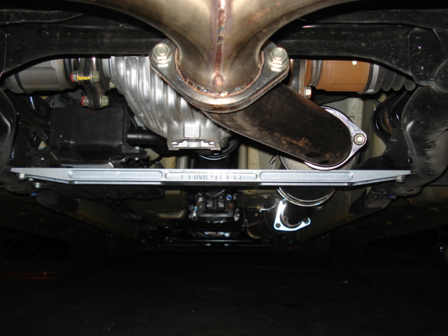 FIt up the new subframe brace to the underbody. Make sure you have it facing the correct direction! In this case, the Comptech logo faces to the rear. |