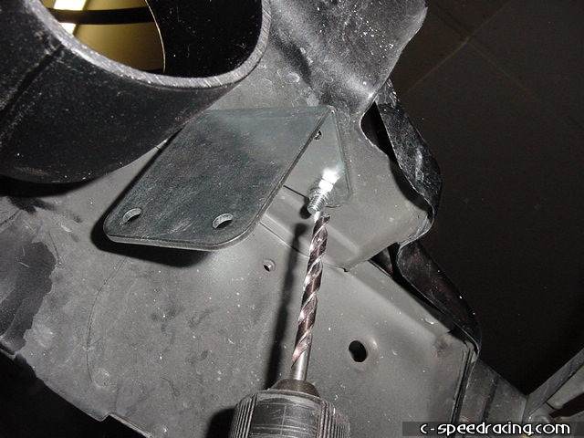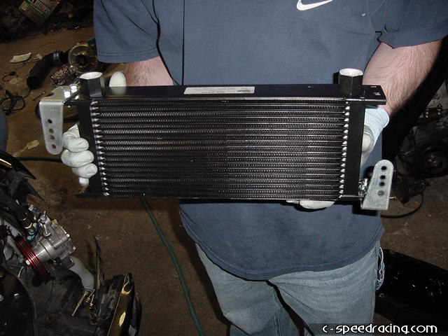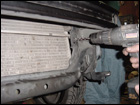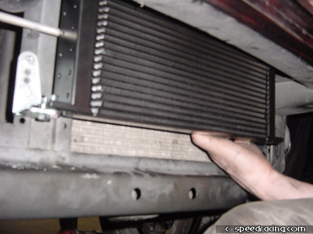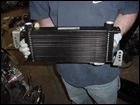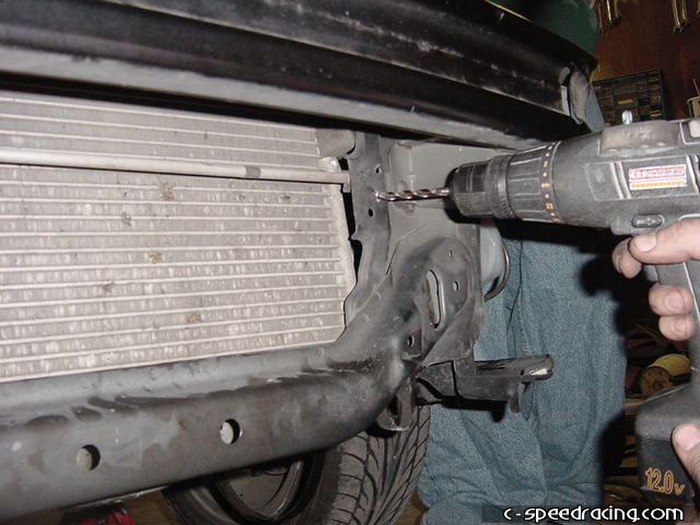 Test fit the watercooler infront of the radiator before drilling the mounting holes. Once you have marked the proper locations, carefully drill into the radiator support. Take your time as a slip up may cost you a new radiator. Once the holes are drilled, go ahead and mount the watercooler in place. |