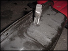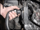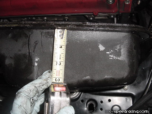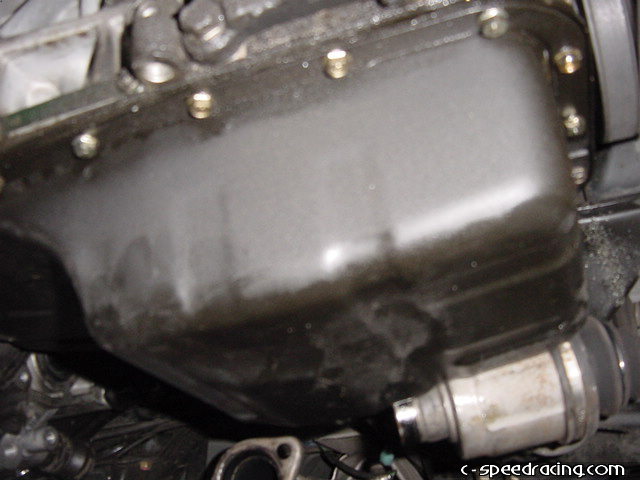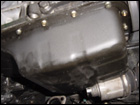 With the header removed, you can now easily access the nuts and bolts that surround the oil pan and remove it from the block. Then following the directions carefully, mark the location to drill a hole for the oil return line. |