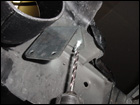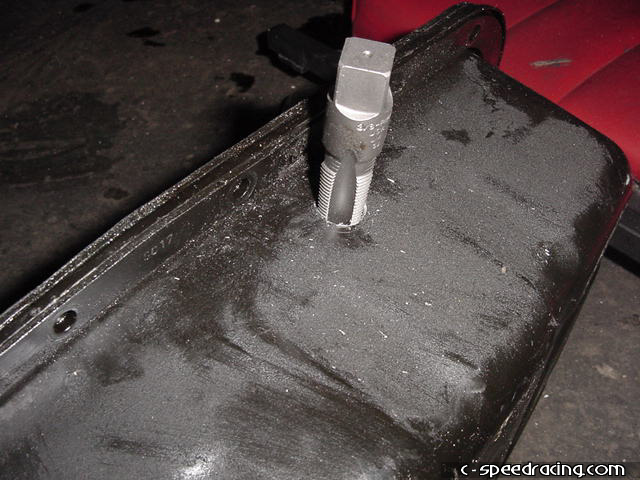 Once the hole is drilled to 7/16", use a 3/8" tap and tap the hole. |