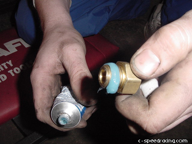 Using sealer, thread the fitting into the oil pan. Be sure to use adequate sealer on the threads. Do not out any on the inside of the pan. |