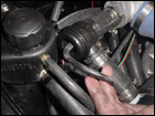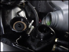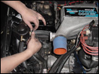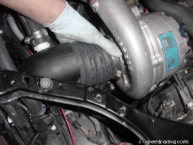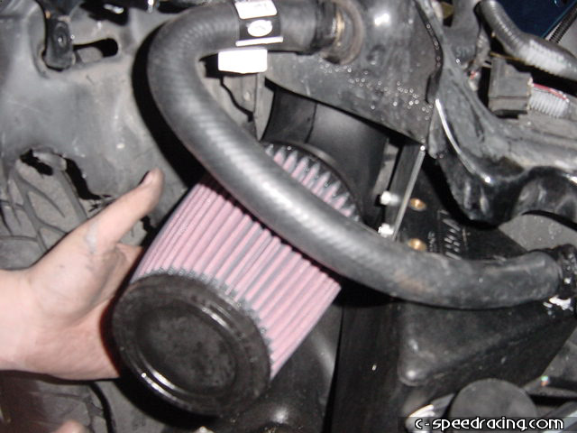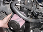 Now bolt on the supplied blow off valve to the aftercooler. Install the K&N filter and plumbing to the passengerside fender well. |