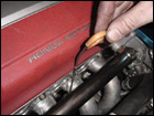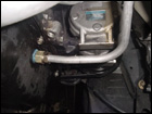 To finish things up under the car. Attach the oil drain hard line to the fitting that was drilled on the oil pan. Make sure that it doesn't rub or hit anything. |